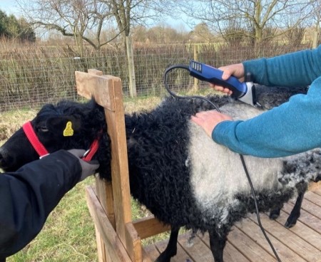 Når fårene skal klippes et par gange om året, som vi selv gør, hjælper brugerne med at berolige dyrene.